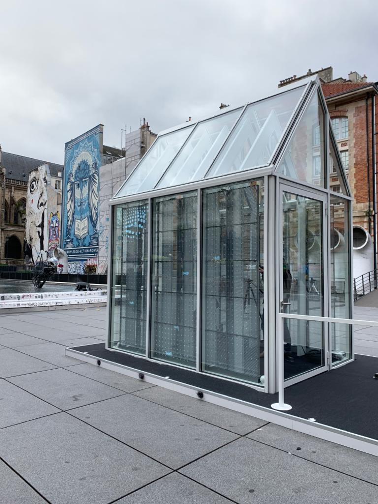 Ce dispositif installé à Paris, tout près du centre Georges POMPIDOU, est une sorte de publicité à libre accès aux visiteurs du lieu. Il invite les gens à le découvrir dans une vocation de découverte spontanée puisque le lieu est touristique et très bien fréquenté. Il consiste à proposer aux visiteurs des moments de silence, de tranquillité et du calme loin de la vie brouillante et très active qu’ils vivent quotidiennement.